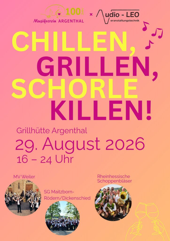 Zu guter Letzt folgt Ende August 2026 die „große Jahrhundertfete“ nach dem Motto „Chillen, Grillen, Schorle killen“ unser Jubiläumsfinale.